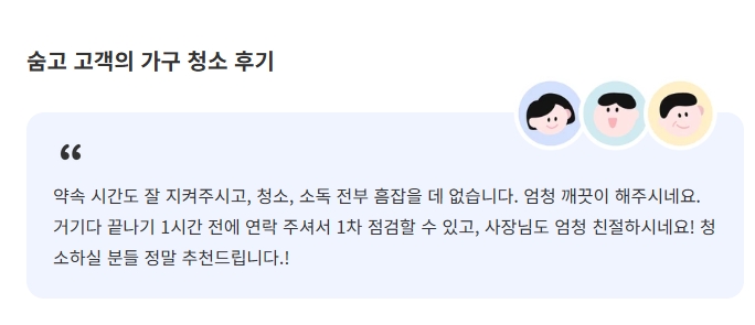 마지막으로, 청소 서비스를 이용한 고객들의 후기를 살펴보는 것이 중요합니다.