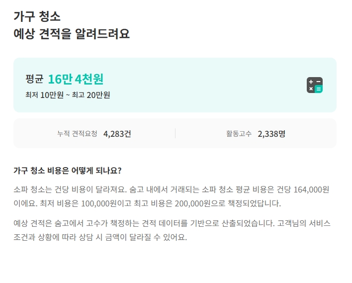 [2] 숨고 - 가구 청소 예상 견적을 알려드려요 (https://soomgo.com/prices/%EA%B0%80%EA%B5%AC-%EC%B2%AD%EC%86%8C)