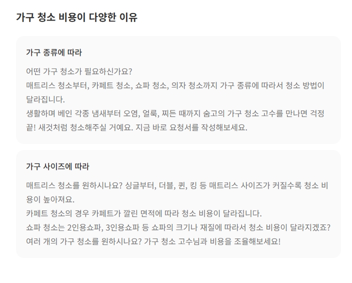 [2] 숨고 - 가구 청소 예상 견적을 알려드려요 (https://soomgo.com/prices/%EA%B0%80%EA%B5%AC-%EC%B2%AD%EC%86%8C)