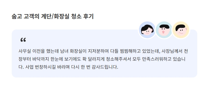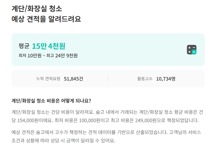 [2] 숨고 - 계단 청소, 화장실 청소 비용은 얼마인가요? (https://soomgo.com/questions/3054)