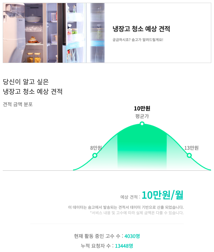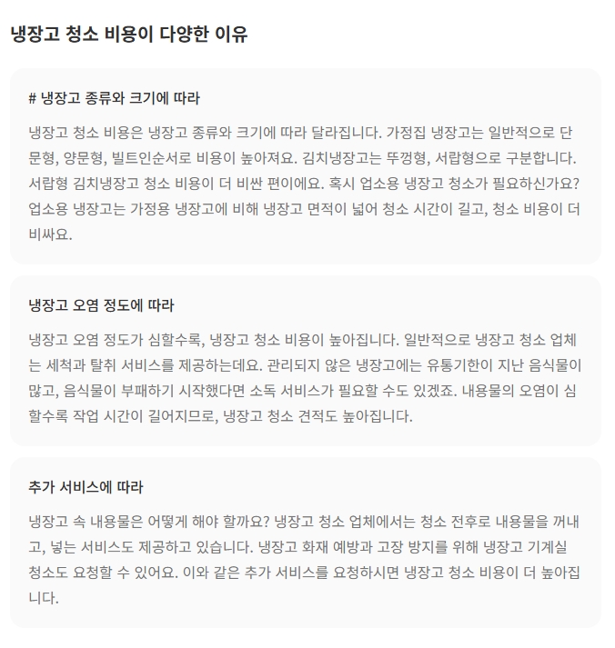 [1] 숨고 - 냉장고 청소 평균 비용을 알려드려요 (https://soomgo.com/prices/%EB%83%89%EC%9E%A5%EA%B3%A0-%EC%B2%AD%EC%86%8C)