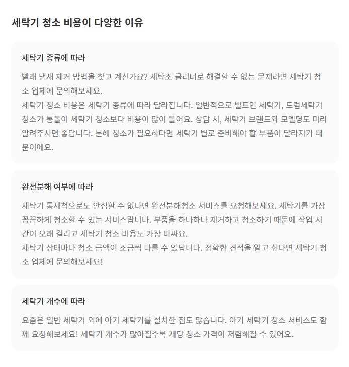 [4] 브런치스토리 - 세탁기 청소 비용은 어떻게 결정될까? (https://brunch.co.kr/@soomgo/1713)