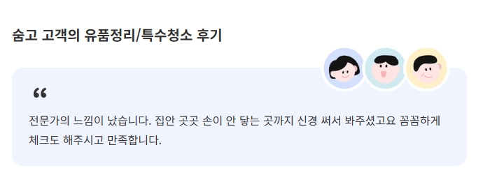 고객의 후기는 서비스의 질을 판단하는 중요한 기준입니다. 한 고객은 '유품정리 서비스를 통해 마음의 짐을 덜 수 있었다'고 전했습니다. 또 다른 고객은 '전문가의 손길로 깨끗하게 정리되어 매우 만족했다'고 이야기했습니다.