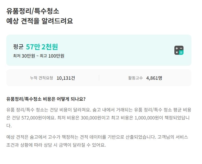 3. 유품정리 및 특수청소의 비용