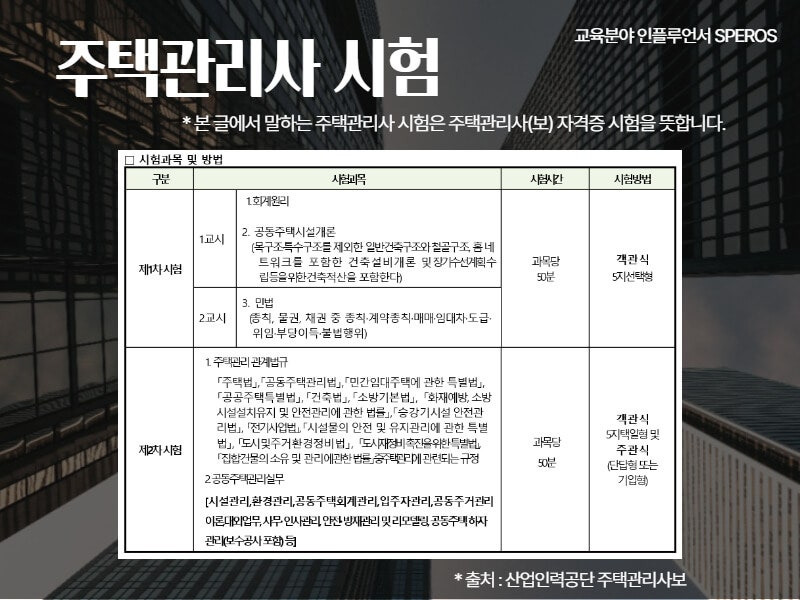 안녕하세요. 교육분야 인플루언서 SPEROS 입니다! * 본 글에서 말하는 주택관리사 시험은 주택관리사...