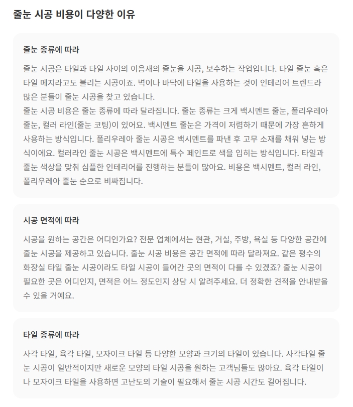 이러한 질문들은 줄눈 시공을 고려하는 분들에게 유용한 정보가 될 것입니다.